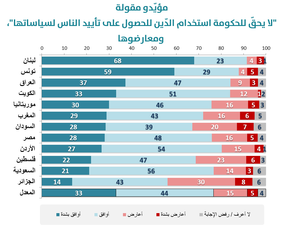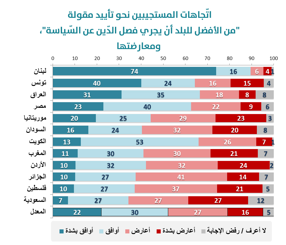 والاجتماعي والسياسي بين المتديّنين وغير المتديّنين. كما أنّ أغلبية الرأي