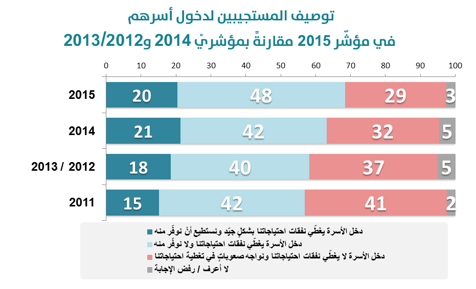 الأساسية، ولا يستطيعون أن يوفّروا منها (أسر الكفاف)، وأفاد 29% من الرأي العامّ أنّ أسرهم تعيش في حالة حاجةٍ وعوز؛ إذ إنّ دخولهم لا تغطّي نفقات احتياجاتِهم.