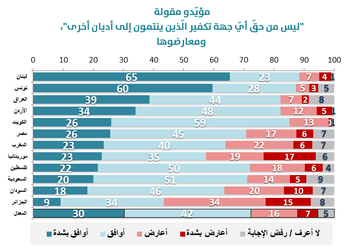 المستجيبين هم من المتديّنين، ترفض أغلبية الرأي العامّ تكفير من ينتمون