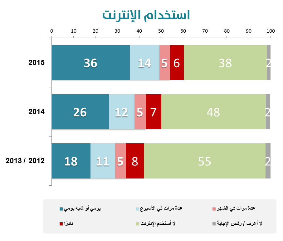 إذ أفاد 38% من المستجيبين أنّهم لا يستخدمون الإنترنت مقابل 61% قالوا