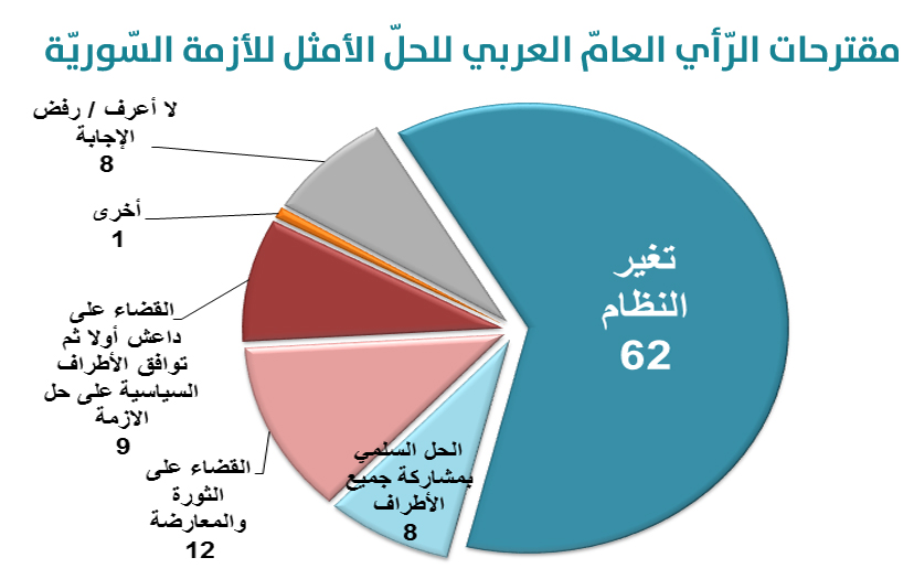 القضاء على الثورة والمعارضة كحلٍ أمثل، ورأى 8% أنّ الحل الأمثل هو حلٌ