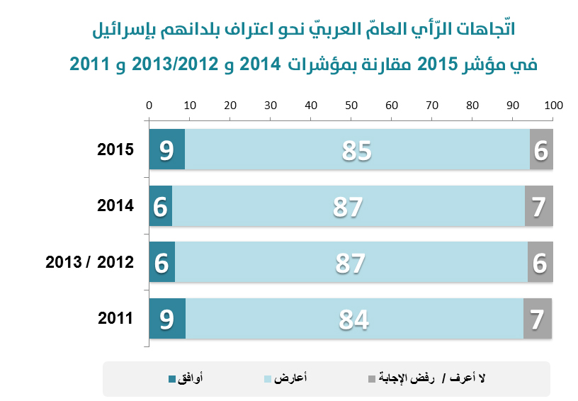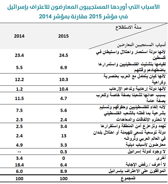 على أنّ النتائج تظهر أنّ آراء المواطنين الذين يرفضون الاعتراف بإسرائيل