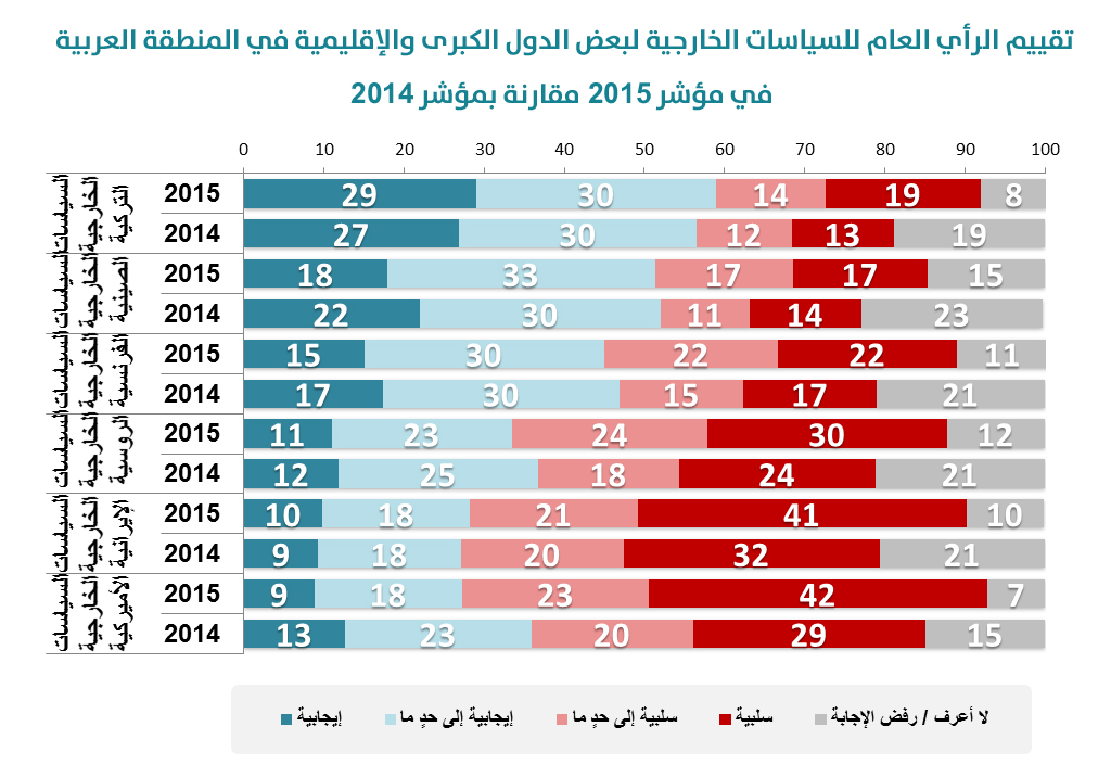 الماضي. بينما كان تقييم سياسات تركيا والصين أكثر إيجابية.