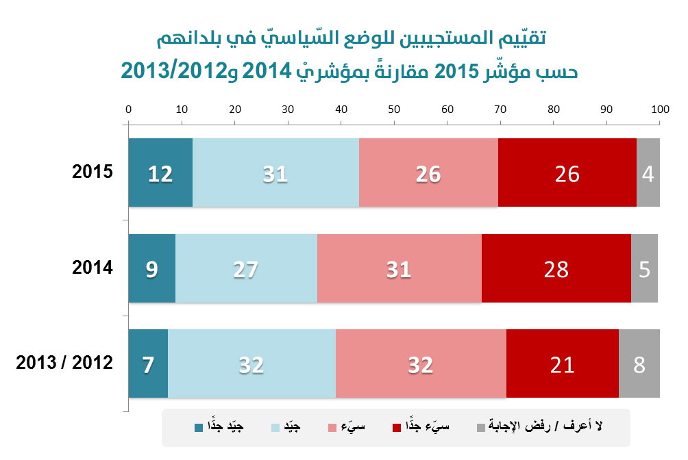 بأنه سلبيّ. إنّ تقييّم المستجيبين للوضع السياسيّ في بلدانهم في استطلاع