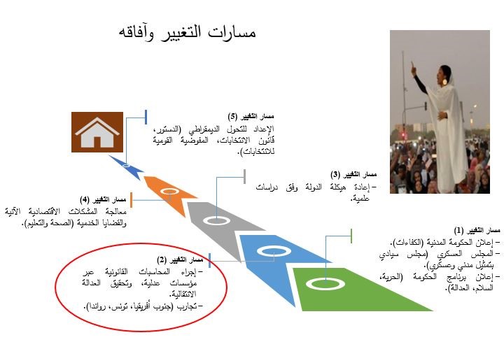 ويمكن أن تشكل هذه المراحل الثلاث الضامن الأساس لنجاح التحول الديمقراطي، وإعادة بناء دولة القانون والمؤسسات في السودان. لكن يجب ألَّا نغفل التحديات الجسام التي تواجه عملية التحول الديمقراطي، والتي تتطلب وعيًا سياسيًا جمعيًا حصيفًا من الحاكمين والمحكومين، وأهدافًا إستراتيجية واضحة وخالية من شوائب الحمولات الأيديولوجية، ليلتف الناس حولها، كما ينبغي أن يكون أداء الحكومة الانتقالية المدنية منضبطًا وشفافًا على مستوى مؤسساتها السيادية العليا، وأجهزتها التنفيذية الدنيا.