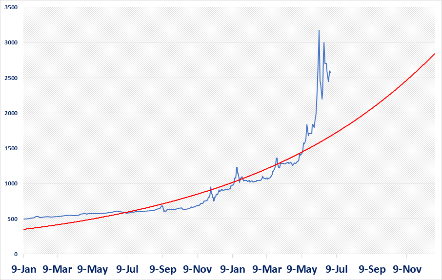 وبالنظر إلى حركة السعر من 2019 حتى نهاية حزيران/ يونيو 2020، يُتوقع أن يُنهي السعر عام 2020 بالقرب من 2900 ليرة، في حال عدم ظهور أحداث طارئة خلال الأشهر المقبلة. وتجعل ظروف الحرب التي تعيشها سورية، والعقوبات المتعددة المفروضة عليها، وتعسر الحل السياسي، وتصدّعات الأسرة الحاكمة، عوامل التنبؤ بحركة سعر الصرف في غاية الصعوبة.