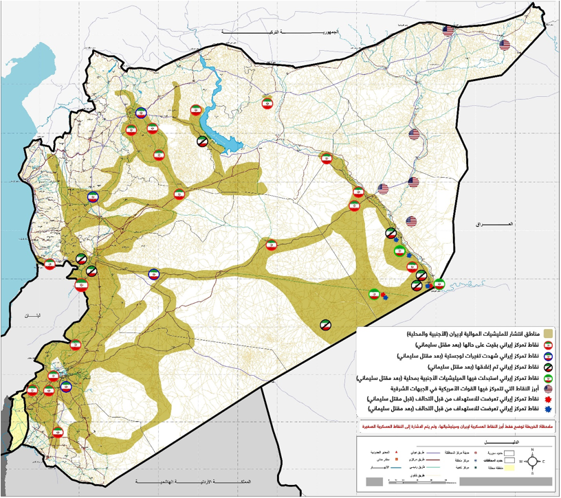 خريطة التغيّرات التي طرأت على أبرز المواقع العسكرية الإيرانية في سورية بعد اغتيال سليماني