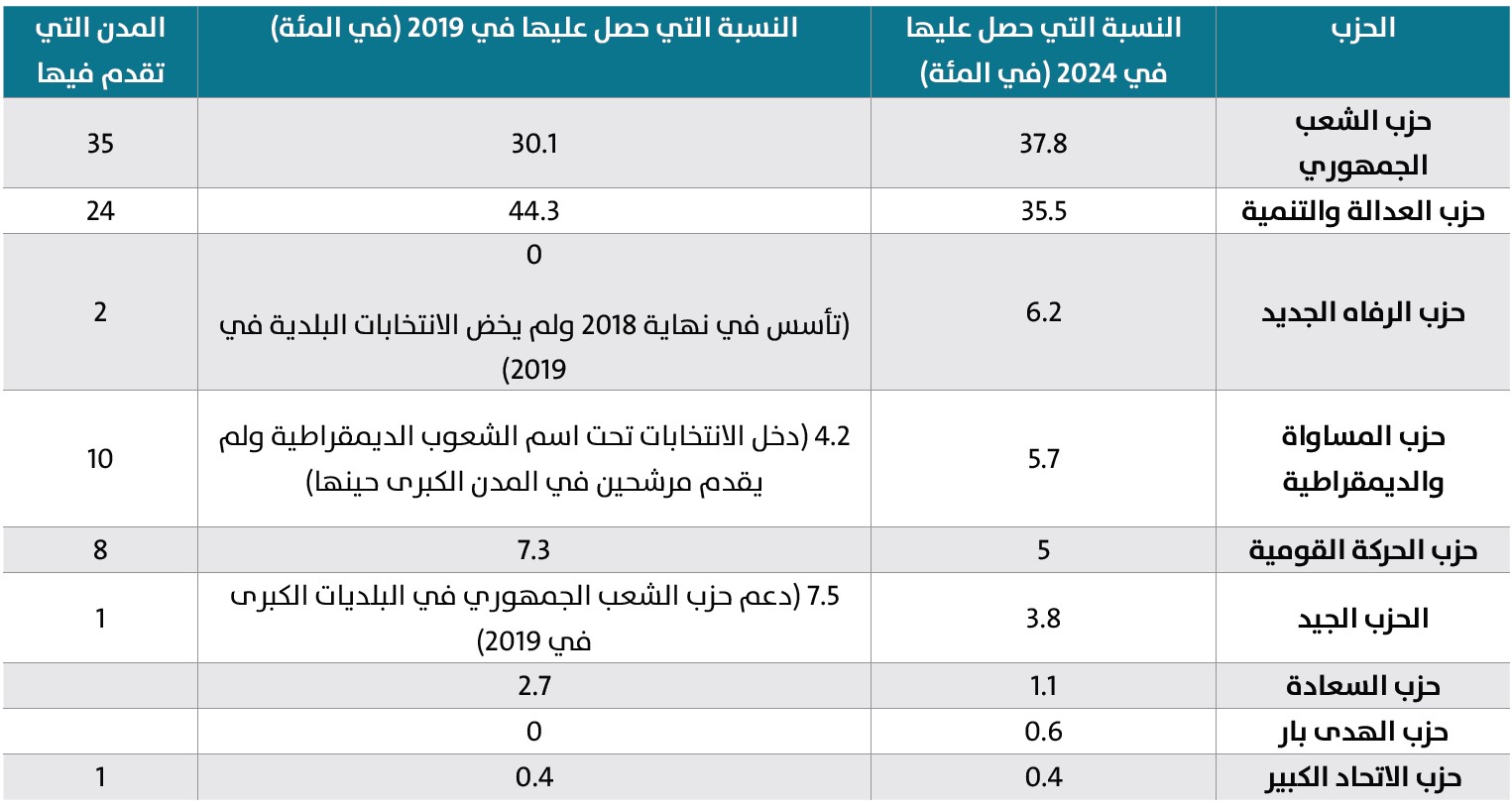 نتائج أبرز الأحزاب السياسية المشاركة في الانتخابات البلدية في 2024 مقارنةً بانتخابات 2019