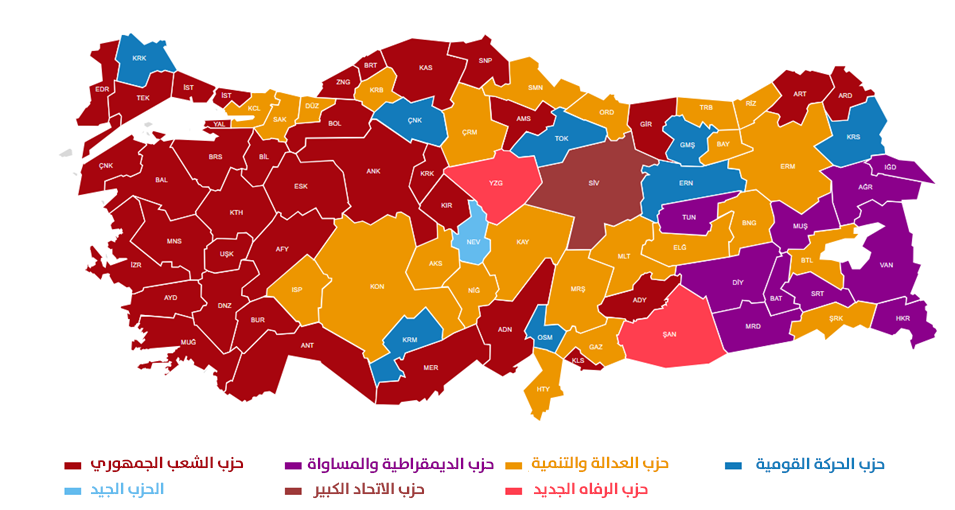 خريطة توضح المدن التي فازت بها الأحزاب في انتخابات 31 آذار/ مارس 2024