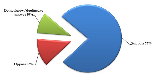 Results from a 2012 Arab Opinion Index, conducted by the Doha-based Arab Center for Research and Policy Studies, in conjunction with a number of local partners in 13 Arab states, indicate that there is somewhat an Arab-wide consensus on the Syrian question. The results show that 77% of the respondents agreed with the statement "It would be better for Syria today if Bashar al Assad stepped down from power." Only 13% of the respondents were opposed to this statement, while 10% offered no response.