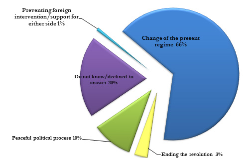 In their answers to open-ended questions, the respondents provided a number of proposed solutions to the Syrian crisis, with responses falling into three main categories: